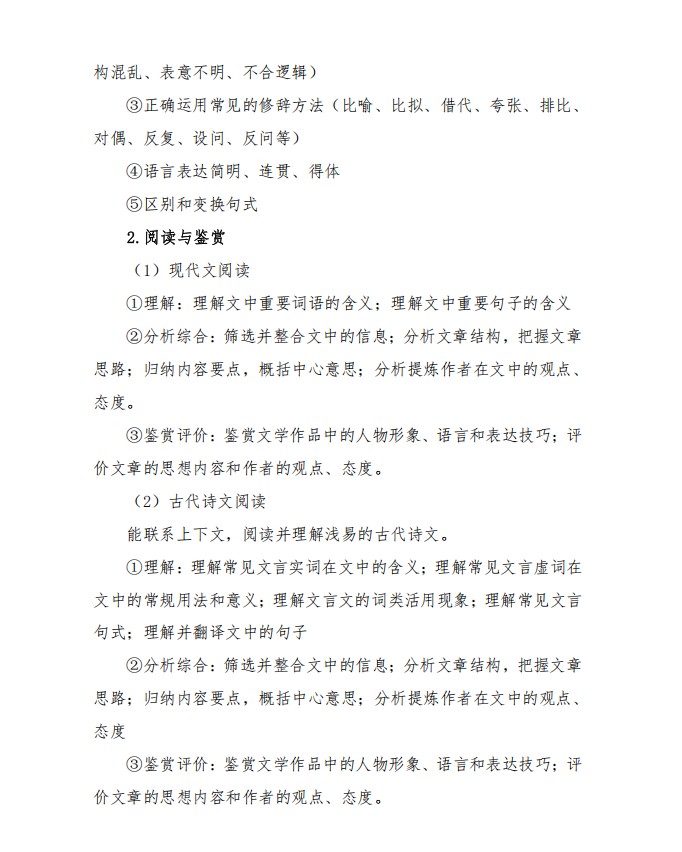 一、单项选择题(共 20 题,其中基础知识及应用 10 题,每题 3 分;现代文阅读 5 题、文言文阅读 5 题,每题 4 分,共 100 分)